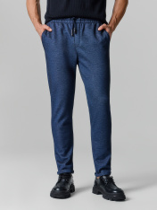 Мужские брюки из интерлока – идеальное сочетание комфорта и стиля. Эта модель прямого силуэта, слегка зауженная к низу, подчеркивает современный и актуальный дизайн. Пояс с эластичной кулиской обеспечивает оптимальную посадку и комфорт в течение всего дня. Карманы в боковых швах добавляют практичности и функциональности, а отвороты на низу брюк придают завершенный и стильный вид. Эти брюки станут отличным дополнением к вашему повседневному гардеробу, позволяя выглядеть элегантно и уверенно в любой ситуации. _x000D_