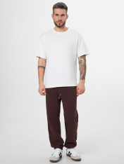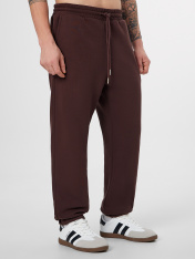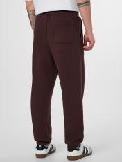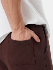 Джогеры прямые, зауженные к низу. Пояс отрезной с эластичной тесьмой внутри. С внутренней стороны пояса пробиты петли и втянут шнур с эглетами (8EКXWCp-1). В боковых швах обработаны карманы - хулиганы, подкладка карман из кулирки. На задней правой половинке накладной карман, по заданию. Нижние срезы брюк обработаны швом вподгибку с эластичной тесьмой внутри._x000D_