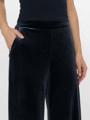 Прямые велюровые брюки из лимитированной коллекции Mark Formelle x Ольга Бузова станут основой элегантного повседневного образа. Их свободный силуэт со средней посадкой обеспечивает комфорт и непринужденную легкость в течение всего дня._x000D_ Благодаря цельной конструкции, брюки сохраняют идеально гладкие линии по переду и спинке. Пояс выполнен как отдельная деталь, что обеспечивает точное прилегание по талии. Аккуратная потайная молния в боковом шве гарантирует удобную посадку и незаметность застежки. _x000D_ <br> Модель дополнена классическими карманами спереди с отрезным боковым элементом и подкладкой из основного материала для сохранения их формы.<br>_x000D_ <br>_x000D_ Бархатистая велюровая поверхность дарит приятные тактильные ощущения и выглядит по-настоящему роскошно. Состав с преобладанием полиэстера и добавлением спандекса обеспечивает прочность ткани и ее мягкую податливость, что позволяет брюкам сохранять безупречный вид в движении. <br>_x000D_ <br>_x000D_ Эти брюки легко сочетаются с водолазками, объемнымиджемперами или шелковыми блузами, создавая гармоничный ансамбль для работы, встреч или отдыха.