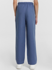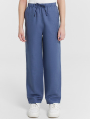 Брюки для мальчиков из ткани. Брюки длинные с классической линией талии. Силуэт прямой, брюки заужены немного к низу. Пояс цельнокроеный. Верхний срез брюк _x000D_ застрочен с эластичной тесьмой. В боковых швах карманы "хулиганы". _x000D_ На внешней стороне пояса пробиты петли, и втянут шнур из основного полотна._x000D_ Низ брюк обработан швом в подгибку. _x000D_ _x000D_