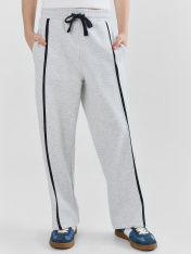 Брюки прямые свободные, посадка средняя. Пояс отрезной, с эластичной тесьмой внутри (внутренняя 50мм 50RV). С внешней стороны пробиты петли и вставлен шнур 10PX-2. В боковых швах обработаны карманы. По бокам лампасы из кулирки._x000D_ Нижний срез брюк обработан швом вподгибку._x000D_ _x000D_ _x000D_ _x000D_ _x000D_ _x000D_