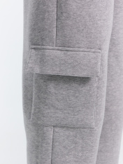 Посадка средняя. Внутрь пояса застрочена эластичная тесьма. По поясу идут две декоративные строчки. На передних деталях брюк настрочены 2 декоративных клапана.По низу брюк застрочена внутрь эластичная тесьма.