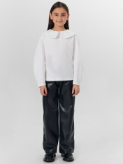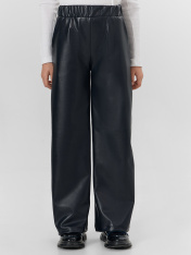 Брюки для девочек свободного силуэта. Средняя посадка, пояс отрезной с эластичной тесьмой Rv50 внутри. Спереди карманы с отрезным бочкок.. Без застежки. Низ обработан швом в подгибку.