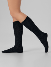 рис.3370 Женские, классические носки с рисунком в виде перекидного переплетения (лапша 5:1) из смешанной пряжи с содержанием шерсти и льна.