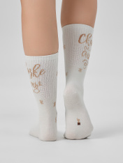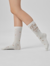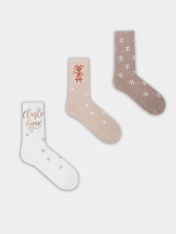 Носки женские набор (3 пары) с новогодним дизайном - отличный вариант, чтобы разом пополнить свой гардероб стильными и красивыми носочками. Готовый комплект включает в себя несколько пар носков, изготовленных из высококачественного гребенного хлопка- тонкого, прочного и эластичного. Натуральные волокна отлично пропускают воздух и впитывают влагу, обеспечивают ощущение комфорта в течение дня. Благодаря небольшому количеству эластана в составе, носочки хорошо облегают и сохраняют форму, практичны и долговечны. Пятка и мысок дополнительно усилены для защиты от протирания при активном движении. Резинка мягко, но надежно удерживает носки, не передавливая ногу и не оставляя на коже следов.
