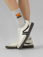 рис.2670 Женский носок с высоким плотным бортом и рисунком в виде котика с надписью.