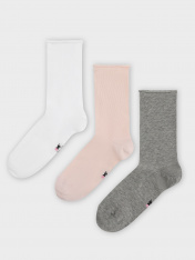 Этот набор женских длинных однотонных носочков — стильный и удобный аксессуар для повседневного гардероба. Мягкий хлопковый материал обеспечивает приятные тактильные ощущения и воздухопроницаемость, даря комфорт в течение всего дня. Длинная модель отлично сидит на ноге, создавая уют и добавляя элегантность в образ. Однотонный дизайн делает носочки универсальными — они легко сочетаются как с классической, так и с спортивной обувью. Прекрасный вариант для тех, кто ценит минимализм, практичность икомфорт!_x000D_ В наборе: 3 пары_x000D_