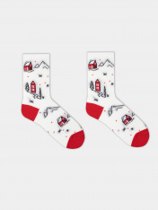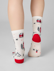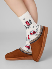 рис.3433 Женские классические носки с рисунком в виде домиков и елок.