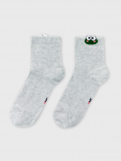 Классические носки женские, средней высоты, с плотным бортом и рисунком в виде лягушки с элементами пикота на бортике. Выполнены из высококачественного гребенного хлопка - тонкого, прочного и эластичного. Натуральные волокна отлично пропускают воздух и впитывают влагу, обеспечивают ощущение комфорта в течение дня. Благодаря небольшому количеству эластана в составе, носочки хорошо облегают и сохраняют форму, практичны и долговечны. Пятка и мысок дополнительно усилены для защиты от протирания приактивном движении. Резинка мягко, но надежно удерживает носки, не передавливая ногу и не оставляя на коже следов. Отличный вариант для круглогодичного использования. Мягкие и комфортные. Порадуйте себя и своих близких прекрасными носочками от Mark Formelle!
