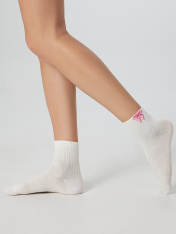 Рис. 3127 Женские носки средней высоты, с плотным бортом и рисунком в виде бантика с пикотом на бортике.