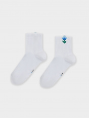 рис.3162 Женские носки средней высоты, с плотным бортом и рисунком в виде цветочка с пикотом.