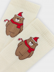 рис.2973 Женские носки с высоким плотным бортом, плюшевым следом и рисунком в виде мишки.