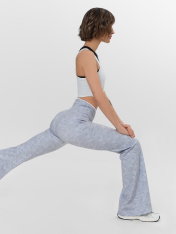 Спортивные брюки с эффектным клешем сочетают в себе функциональность и стильный дизайн. Модель плотно облегает бедра до колен и плавно расширяется книзу, обеспечивая полную свободу движений Высокая линия талии с фигурным поясом подчеркивает женственные пропорции, сохраняя спортивный характер модели.<br>_x000D_ <br>_x000D_ Широкий отрезной пояс с внутренним накладным карманом практичен для хранения мелочей. Ластовица добавляет комфорт при активном движении. Качественная обработка низа гарантирует сохранениеформы при интенсивной эксплуатации.<br>_x000D_ <br>_x000D_ Состав с преобладанием полиэстера и добавлением эластана обеспечивает идеальное облегание и быстрое восстановление формы после растяжения. Брюки легко сочетаются со спортивными топами, кроссовками или кедами._x000D_ Идеальный выбор для тренировок, активного отдыха или создания модного повседневного образа.