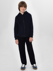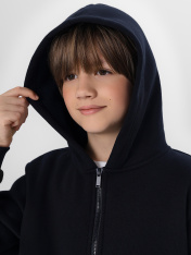 Стильная спортивная толстовка на молнии для мальчиков. Выполнена из теплого и нежного трикотажного футера с подчесом. Прямой свободный силуэт дополнен уютным капюшоном и удобным карманом-кенгуру. Рукава длинные, линия плеча немного спущена. Рекомендуем для прохладной погоды!_x000D_ _x000D_