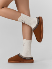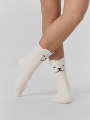 рис.3359 Женские, высокие носки, из каракулевой пряжи с рисунком в виде морды медведя и 3D рисунком на борту._x000D_