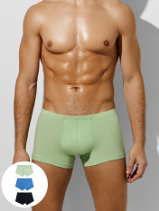 Набор трусов мужских в количестве 3 штук изготовлен из трикотажного полотна кулирного переплетения. Прилегающие, без боковых швов. Планка с средним швом. Шаговый шов выполнен строчкой "флэт-лок". Верхний край трусов застрочен с эластичной тесьмой на плоскошовной машине.