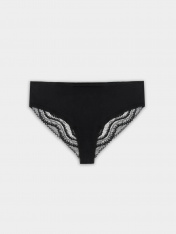 Пикантные трусики-бразилиана с невысокой посадкой по талии. На верхнем срезе и ножках – эластичная тесьма. Задняя деталь полностью состоит из эластичного кружева, что добавляет модели шарма. Рекомендуем в базовой расцветке!