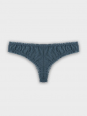 Трусы женские, средняя линия талии, силуэт - бразилиано. Передняя и задние детали выполнены из сетки. Подкладка ластовицы из хлопка, верхний срез подкладки ластовицы отлетной. По верхнему срезу трусов и по ножкам рюша из сборки, под низом жилка.