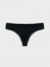 Трусы женские, средняя линия талии, силуэт - бразилиано. Передняя и задние детали выполнены из сетки. Подкладка ластовицы из хлопка, верхний срез подкладки ластовицы отлетной. По верхнему срезу трусов и по ножкам рюша из сборки, под низом жилка.