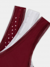 Набор женских трусов бразилиана — сочетание комфорта и элегантного дизайна! Модели со средней посадкой обеспечивают комфорт в течение дня, мягко повторяя линии фигуры. Изделие выполнено из нежной хлопковой кулирки, которая приятно прилегает к коже, обладает высокой воздухопроницаемостью и дарит ощущение легкости. Задняя часть со средним швом обеспечивает хорошую посадку и аккуратный внешний вид. Верхний и нижний срезы обработаны эластичной тесьмой, что делает трусики еще более удобными и помогает им сохранять форму.Такой набор идеально подходит для повседневного ношения, сочетая нежность, качество и стиль. Выберите для себя удобные и красивые модели, которые подчеркнут вашу естественную привлекательность и подарят комфорт на весь день!_x000D_ В наборе: 3 шт._x000D_ _x000D_