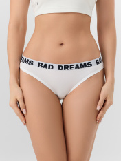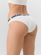 Слипы создают романтичное и жизнерадостное настроение. Модель со средней посадкой из мягкого хлопкового трикотажа обеспечивает комфорт и аккуратное облегание._x000D_ Передняя и задняя часть слипов выполнены как одно целое, без швов по бокам, для гладкой посадки. Узкие боковые стороны подчеркивают фигуру. <br>_x000D_ <br>_x000D_ Верхний край оформлен узорчатой эластичной лентой для удобной фиксации на талии, а нижние края аккуратно обработаны. Внутренняя вставка выполнена из такого же мягкого и дышащего материала для дополнительного комфорта. <br>_x000D_ Трусы выполнены из хлопка с добавлением эластана. Этот состав делает материал дышащим, мягким и упругим, сохраняя форму и яркость цвета после множества стирок. <br>_x000D_ <br>_x000D_ Слова на принте добавляют образу личный и позитивный акцент. Эти слипы станут нежным и стильным элементом вашего нижнего белья._x000D_