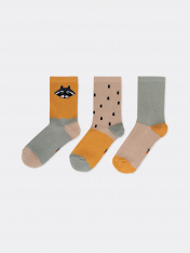 рис.2071 Мультипак из гладких детских носков с рисунком в виде енота и черточек.