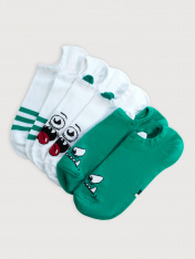 Набор детских кротких носочков из высококачественного хлопка с рисунком. Натуральные волокна отлично пропускают воздух и впитывают влагу, дарят ощущение комфорта в течение дня. Благодаря небольшому количеству эластана в составе, носки удобно сидят на ножке и не сползают, хорошо тянутся и легко надеваются. Пятка и мысок дополнительно укреплены для защиты от протирания. Резинка мягко, но надежно удерживает носки, не оставляя на коже следов. Маленьким модникам они точно понравятся!