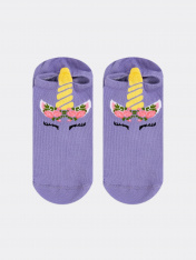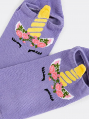 рис.1942 Детский носок гладкий суперкороткий с рисунком в виде единорога и3-д рисунком.