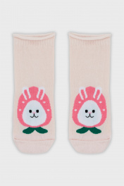 рис.3245 Детские классические носки без борта, с рисунком в виде зайчика и силиконом на стопе.