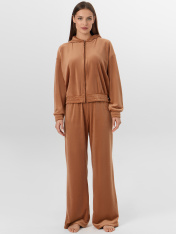 Женская домашняя толстовка из мягкого велюра — это воплощение уюта и расслабленного стиля. Модель свободного кроя с мягким капюшоном и удобной молнией создает ощущение комфорта и расслабленности. Элегантный велюр с добавлением эластана нежно обволакивает фигуру, сохраняя тепло и даря приятные тактильные ощущения.<br>_x000D_ <br>_x000D_ Манжеты на рукавах и пояс по низу, дополненные декоративными строчками, обеспечивают аккуратную посадку. Внутренние швы горловины обработаны мягкой хлопковой тесьмой для приятных тактильных ощущений. Велюровый материал с добавлением эластана мягко тянется и дарит нежность при каждом движении. Эта толстовка станет любимым предметом гардероба для спокойных вечеров и утреннего отдыха._x000D_