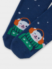 Новогодние носки детские с плюшевым следом и рисунком в виде медведя. Выполнены из высококачественного гребенного хлопка - тонкого, прочного и эластичного. Натуральные волокна отлично пропускают воздух и впитывают влагу, обеспечивают ощущение комфорта в течение дня. Благодаря небольшому количеству эластана в составе, носочки хорошо облегают и сохраняют форму, практичны и долговечны. Пятка и мысок дополнительно усилены для защиты от протирания при активном движении. Резинка мягко, но надежно удерживает носки, не передавливая ногу и не оставляя на коже следов. Отличный вариант для круглогодичного использования. Мягкие и комфортные. Рекомендуем в качестве подарка на Новый год и Рождество!