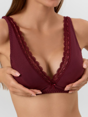 Повседневный хлопковый бюстгальтер. Благодаря тонким дубляжным чашкам и отсутствию каркасов практически не ощущается на теле. Узкое эластичное кружево на срезе декольте делает модель очень женственной.