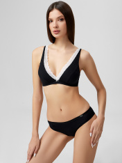 Повседневный хлопковый бюстгальтер. Благодаря тонким дубляжным чашкам и отсутствию каркасов практически не ощущается на теле. Узкое эластичное кружево на срезе декольте делает модель очень женственной.