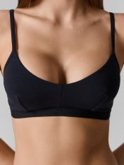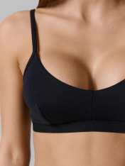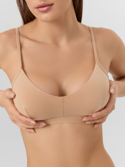 Бюстье базовой расцветки из хлопкового полотна – гипоаллергенного и приятного на ощупь. Мягкие чашки без косточек гарантируют полный комфорт. Бретели в бюстье регулируются. По нижнему срезу проходит жаккардовая тесьма.