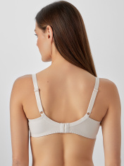 Бюстгальтер макси — элегантное решение для уверенной поддержки и повседневного комфорта. Модель с мягкими чашками на косточках, состоящими из двух частей для лучшей поддержки, обеспечивает идеальную форму и надежную фиксацию. Корректирующие боковые детали мягко моделируют силуэт, а широкие бретели равномерно распределяют нагрузку.<br>_x000D_ <br>_x000D_ Нежное кружево в верхней части чашек добавляет образу женственности. Состав с преобладанием полиамида и хлопка обеспечивает воздухообмен, а эластан гарантирует идеальное облегание. Бюстгальтер подойдет для обладательниц пышного бюста — в нем удобно двигаться, заниматься спортом или носить его в течение всего дня. Универсальный белый цвет позволяет сочетать его с любым низом из коллекции._x000D_
