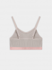 Хлопковое бюстье прилегающего силуэта для девочек. Выполнено из легкой и приятной к телу трикотажной рибаны. Вырез горловины и проймы окантованы эластичной тесьмой. На бретелях есть кольца-регуляторы. По нижнему краю бюстье расположена удобная и стильная жаккардовая тесьма. Идеально!