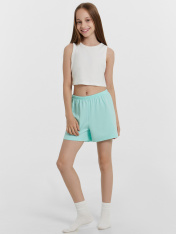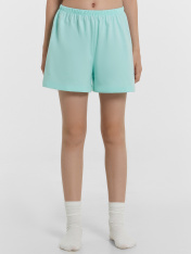 Шорты свободного силуэта. Пояс цельнокроеный с эл. тесьмой внутри (внутренняя резиной 20RV), ширина 20 мм. Низ шортов обработан на 2-х игольной плоскошовной машине швом в подгибку.