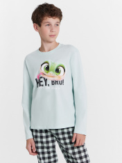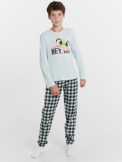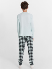Повседневная пижама (комплект) для мальчиков, состоит из джемпера с длинными рукавами и брюк. Изготовлена из высококачественного натурального хлопка, что обеспечивает комфорт как в летний, так и в зимний период. Материал хорошо тянется, быстро впитывает влагу и легко сохнет, не сковывает движений и не создает парникового эффекта. Отличный вариант для каждодневной носки. Пижама детская для подростка мальчика идеально подходит для отдыха в комфортной домашней обстановке и сна. В линейке много интересных расцветок, есть красивые варианты с принтами. Модель пижамы хорошо садится как на высоких мальчиков, так и на невысоких. Рекомендуем!