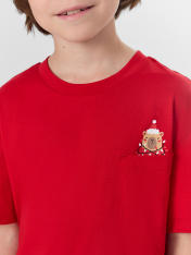 Комплект для мальчиков состоит из джемпера из кулирки (Sj-001.01.140) и текстильных шортов (Tco-049.01.110)._x000D_ Горловина круглой формы с притачной обтачкой из основго полотна. Рукава короткие втачные. Перед и спинка цельнокроеные. Карман настрочной с отделочными закрепками._x000D_ Низ джемпера и рукавов обработан швом вподгибку._x000D_ Пояс цельнокроенный с эластичной тесьмой 30 мм внутри.