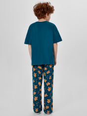 Комплект для мальчиков состоит из джемпера и брюк._x000D_ Джемпер прямого, свободного силуэта. Перед и спинка цельнокроеные. Плечо слегка спущено. Горловина круглой формы с притачной обтачкой из основного полотна._x000D_ Рукав втачной, одношовный, короткий. _x000D_ Брюки прямого, свободного силуэта. Пояс цельнокроеный с эластичной тесьмой внутри(внутрення резина 30RV), ширина 30 мм._x000D_ Низ джемпера и брюк обработан на 2-х игольной плоскошовной машине швом в подгибку_x000D_