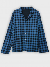 Комплект состоит из сорочки верхней и брюк._x000D_ Комплект выполнен из трикотажного полотна кулирки._x000D_ Сорочка прямого силуэта, свободная._x000D_ Рукава втачные длинные, линия плеча слегка спущена. _x000D_ Горловина V-образной формы с отложным воротником. _x000D_ Низ изделия и низ рукавов застрочен швом в подгибку._x000D_ Брюки прямые, свободные. Пояс цельнокроеный с эластичной тесьмой внутри. _x000D_ В боковых швах обработаны карманы._x000D_ Низ изделия застрочен швом в подгибку._x000D_