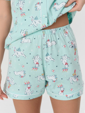 Домашняя пижама в костюмном стиле станет вашим верным спутником для моментов полного расслабления. Этот элегантный ансамбль из рубашки и шорт создан для тех, кто ценит уют и безупречный вкус в повседневной жизни._x000D_ Рубашка с отложным воротником и короткими рукавами застегивается на аккуратные пуговицы. Свободные шорты с эластичным поясом бережно облегают талию, не стесняя движений во время отдыха или домашних дел.<br>_x000D_ <br>_x000D_ Комплект выполнен из хлопка, который дарит коже нежную прохладу летом исогревающее тепло зимой. Натуральный материал обладает высокой воздухопроницаемостью, обеспечивая комфортный микроклимат в любое время суток. <br>_x000D_ <br>_x000D_ Нежный оттенок и стильный принт создают настроение гармонии и уюта._x000D_ Универсальная модель представлена в широком размерном ряду, включая варианты для девушек с пышными формами. <br>_x000D_ <br>_x000D_ Комплект станет идеальным выбором для спокойного сна, утреннего кофе или вечернего отдыха в стенах дома._x000D_