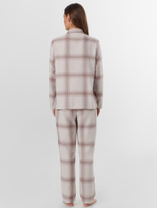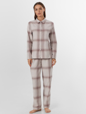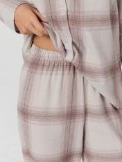 Пижама женская домашняя в клетку — это уют и гармония для вашего отдыха. Набор из рубашки и брюк выполнен из хлопка, который дарит коже нежность, воздух и комфорт. Свободный силуэт рубашки с заниженной линией плеч и длинными рукавами не сковывает движений, а застежка на пуговицы добавляет классическую элегантность.<br>_x000D_ <br>_x000D_ Брюки с широким эластичным поясом мягко сидят на талии, не оставляя следов, а клетчатый рисунок придает образу теплоту и домашний шарм. Этот комплект подойдет для сна, утреннего кофе или отдыха с книгой — он сочетает практичность и стиль._x000D_ Если вы ищете, где купить домашнюю пижаму, которая объединяет натуральные материалы, продуманный крой и дизайн, этот набор станет вашим любимым выбором._x000D_ _x000D_