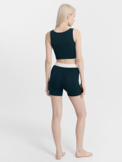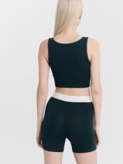 Стильный женский комплект состоящий из топа и шорт. Топ прилегающего силуэта. Перед и спинка цельнокроеные. Горловина формы каре. Шорты облегающего силуэта. Спереди - декоративная отрезная деталь и имитация гульфика. По верхнему срезу выполнена жаккардовая эластичная тесьма, которая надежно удерживает топ и гарантирует отличную посадку. Пижама женская выполнена из высококачественного хлопка. Такой комплект можно использовать дома для сна, отдыха и занятий спортом. Широкий размерный ряд, красивые базовые цвета в линейке. Рекомендуем!