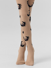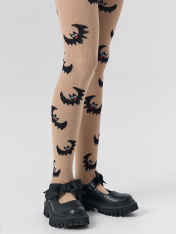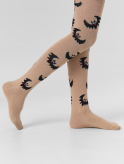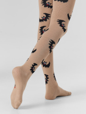 Рис.3390 Гладкие колготки с рисунком в виде летучих мышей и цветных пятки и мыска.