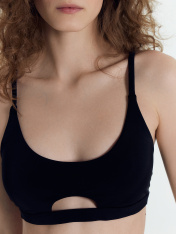 Стильный костюм купальный женский состоит из бюстье и трусиков слипов. Бюстье купальное с чашками-вкладышами. Деталь лифа цельная с декоративным отверстием по центру ниже уровня груди. Горловина, проймы и декоративная прорезь. Трусы купальные слипы с высокой линией талии. Ластовица и фронтальная часть на подкладке. По бокам протяжки из окантовки. Красивый и элегантный. Рекомендуем этот купальник для отдыха на пляже!
