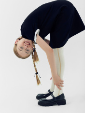 Рис.748. Колготки гладкие с рисунком в виде лампаса из люрексной пряжи.