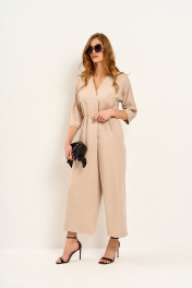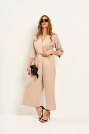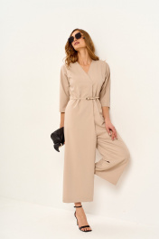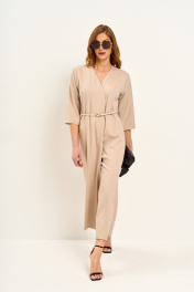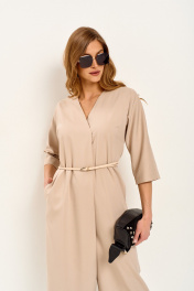 Комбинезон женский, свободного кроя с рукавом покроя "реглан" . На деталях переда обработаны карманы в швах. По лифу заложена складка для свободного облегания. Застежка на тесьму "молния" в среднем шве спинки. В комплекте идет пояс.