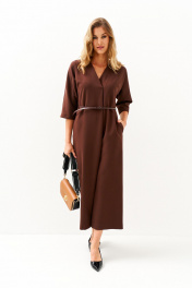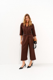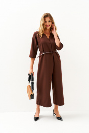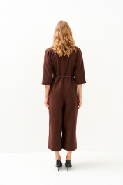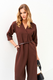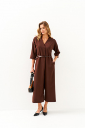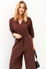 Комбинезон женский, свободного кроя с рукавом покроя "реглан" . На деталях переда обработаны карманы в швах. По лифу заложена складка для свободного облегания. Застежка на тесьму "молния" в среднем шве спинки. В комплекте идет пояс. Длина изделия 120см, длина рукава 45см