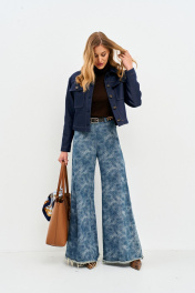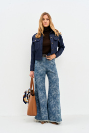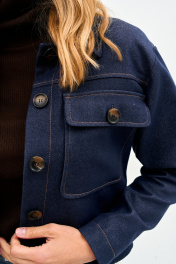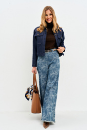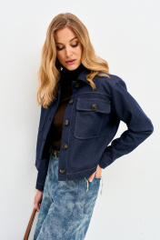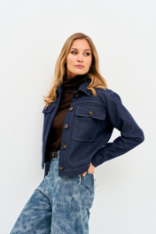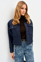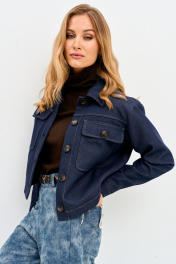 Жакет женский на подкладке с центральной бортовой застежкой на петли, пуговицы. Воротник стояче отложной. Рукав втачной двухшовный . Детали переда и спинки с кокетками. На деталях переда обработаны накладные карманы с клапанами.